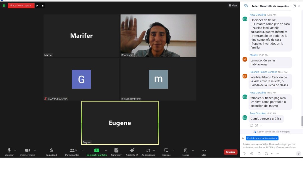 Asesorías para la conceptualización, fundamentación y redacción de proyectos artísticos PECDA / JÓVENES CREADORES. Durante las sesiones hubo participantes de Guadalajara, Querétaro, Veracruz y Guanajuato.
