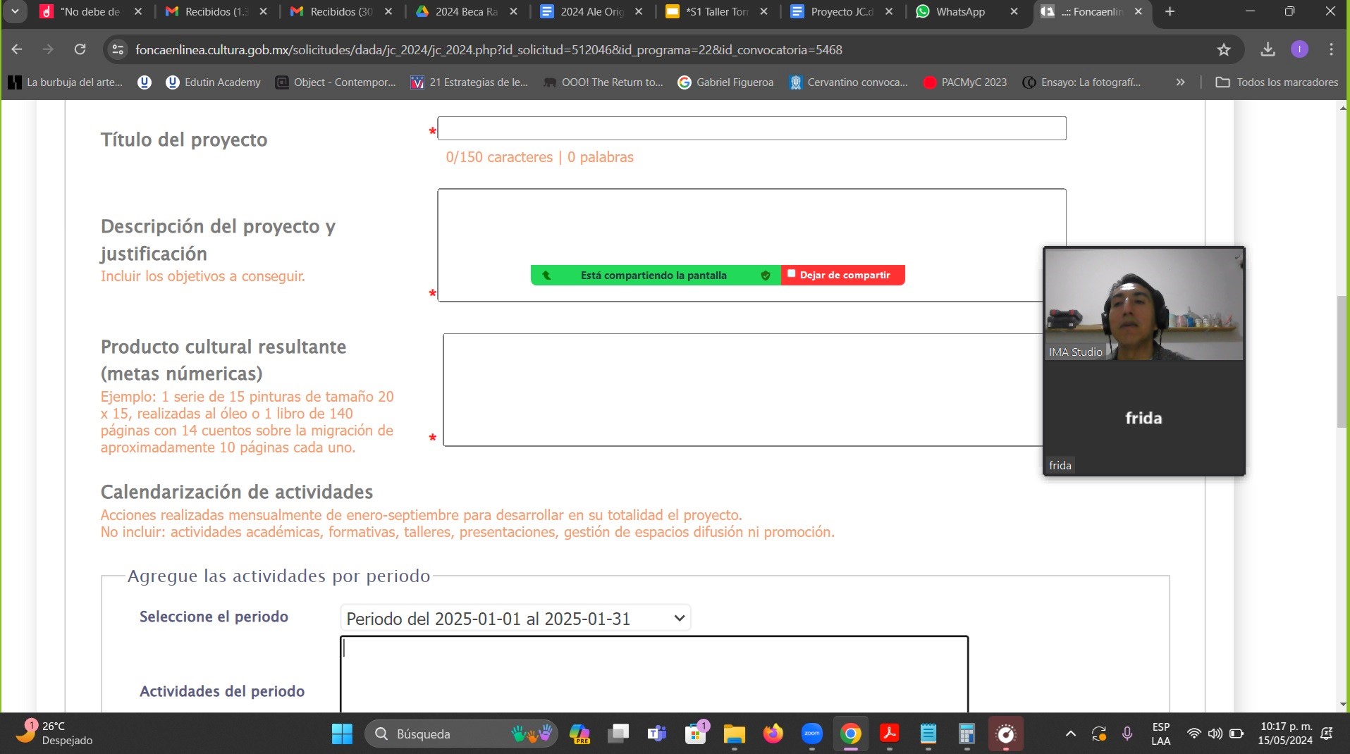 2024 | Desarrollo de proyectos PECDA / Jóvenes Creadores. En línea.