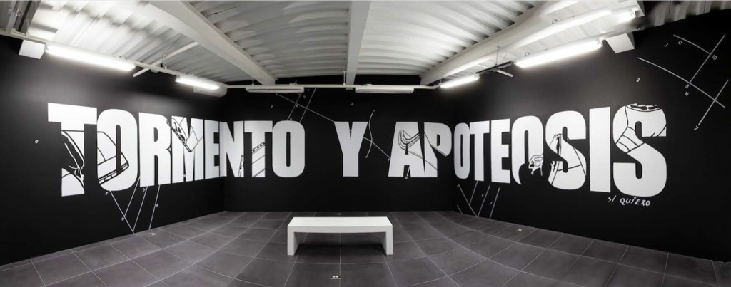 Sabemos gracias a la crítica de arte Raquel Tibol que el muralista José de Jesús Alfaro Siqueiros -quien posteriormente usaría el seudónimo David por sugerencia de su primera esposa- nació en la Ciudad de México y fue registrado en Irapuato, siendo su padre quien lo trajo a vivir a esta ciudad del bajío donde realizó sus primeros estudios bajo el cuidado de sus abuelos paternos. Es conocido que Siqueiros abordó de diversas formas el tema de lo violento, de la crueldad implícita en el devenir histórico de México. Tormento y Apoteosis hace eco de esa tradición y alude al caos que se vive en estos días tanto a nivel local como nacional. Con esta pieza pretendemos reflexionar sobre la contradicción que implica, por una parte, el ensalzamiento de la violencia y por otra, su padecimiento. El mural contiene elementos gráficos (esquemas de trozos de carne, texto en blanco y negro, patrones de corte de una res) que en su conjunto hacen referencia al estado actual de las cosas. Por último, la frase “Si Quiero” –cuya tipografía fue tomada de la firma que Siqueiros plasmaba en sus cuadros- hace referencia, de forma irónica, a la manera en que nos relacionamos con la violencia en este país.