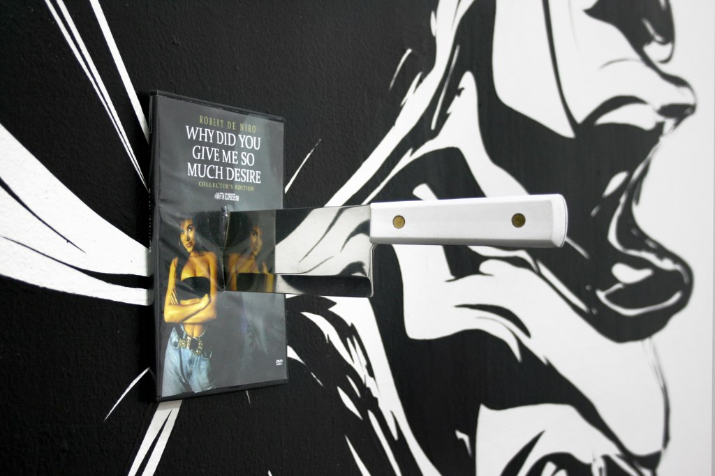 A partir de la imagen, el objeto y la palabra escrita, la obra aborda la individualidad y el deseo consumista.